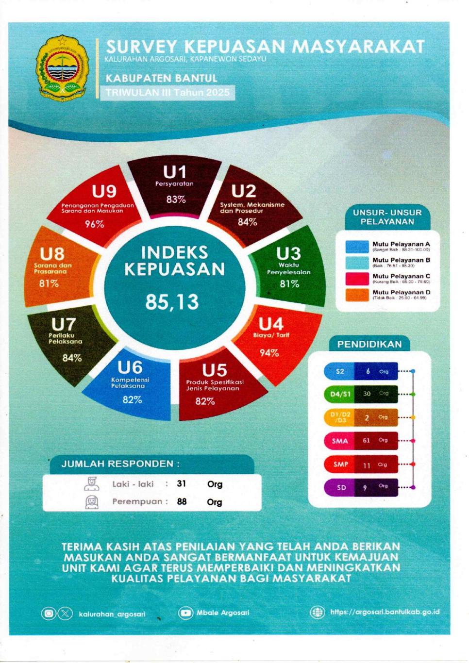 - Indeks Kepuasan Masyarakat Terhadap Pelayanan di kalurahan Argosari Triwulan ke 3
